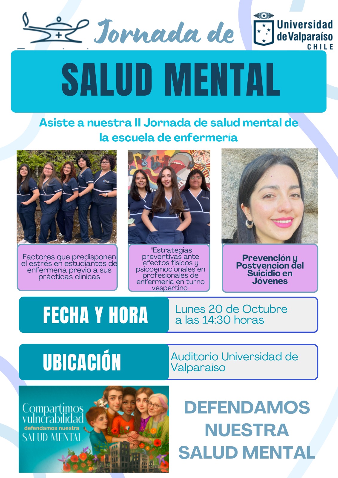 En el marco de la conmemoración del día internacional de la salud mental, la profesora Roxana Gálvez encargada del eje temático, ha organizado la II jornada de Salud Mental con el lema "Compartimos vulnerabilidad, defendamos nuestra Salud Mental".