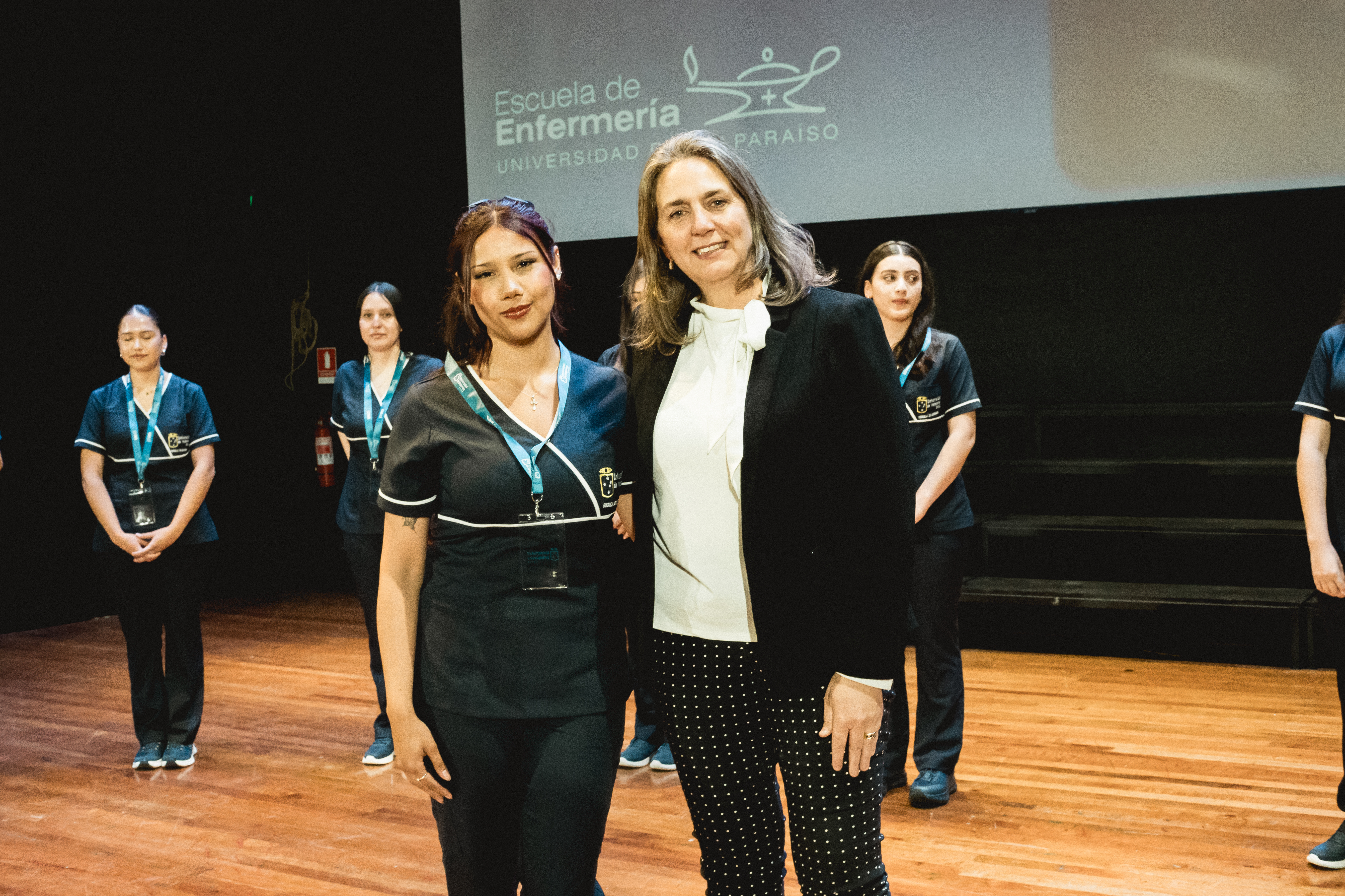 El acto contó con la presencia del decano de la Facultad de Medicina, Dr. Antonio Orellana Tobar; la directora subrogante de la Escuela, profesora Carolina Ruiz-Tagle Pérez; y la jefa de carrera de Casa Central, profesora Marcela Morella Arbona, junto a docentes, funcionarios, familiares y amistades de los nuevos estudiantes.