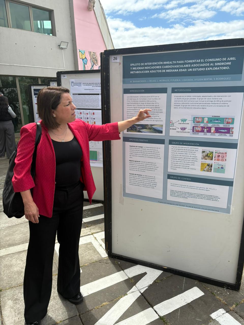 Y la participación de la docente Sandra Rodríguez, que presentó: Piloto de intervención mHealth para fomentar el consumo de jurel y mejorar indicadores cardiovasculares asociados al síndrome metabólico en adultos de mediana edad: un estudio exploratorio, investigación interuniversidad dirigido por PhD. Ayleen Bertini, Docente Investigadora, Universidad San Sebastián y la participación de Prof. Paola Puebla y Sandra Rodríguez, de la escuela de Enfermería UV.