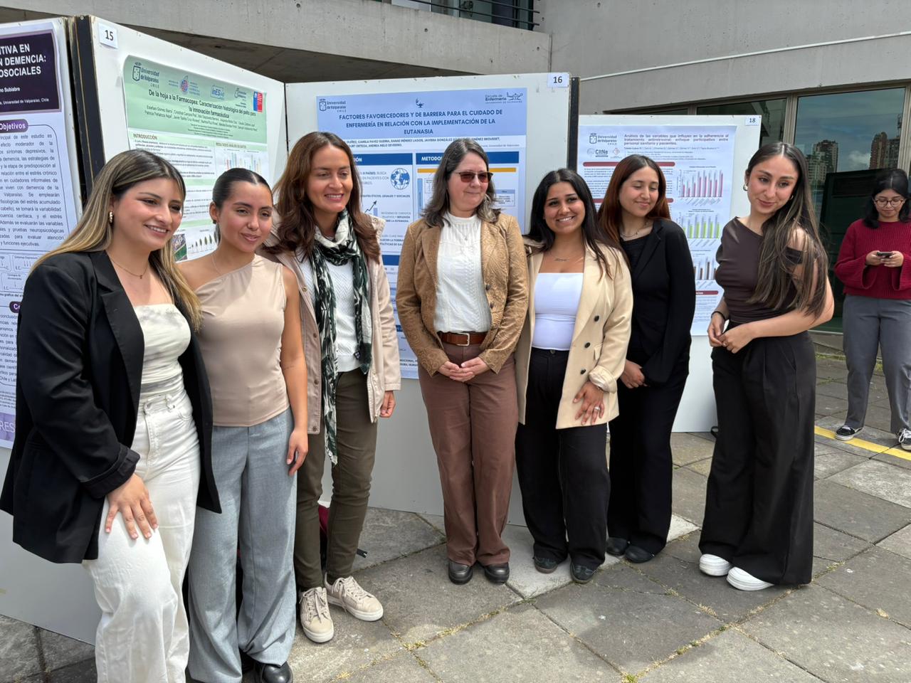 Con presentación de Posters en la explanada del edificio, instancia en la que participaron estudiantes de pregrado de nuestra escuela, Javiera Pinilla Guíñez, Camila Pávez Guerra, Dánae Méndez Lagos, Javiera González Díaz, Sofia Jiménez Brousset, Junto a las docentes guías Prof. , Lorena Bettancourt Ortega y Andrea Melo Severino, con la investigación: Factores favorecedores y de barrera para el cuidado de enfermería en relación con la implementación de la eutanasia.